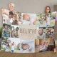 Believe Be Happy 10 Photo Collage Neutral Beige Fleece Blanket