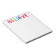 This pad of notes is perfect for anyone! With it's bright, happy colors and classic block print saying "Believe" it will lift anyone's spirits. Believe in good, believe in promise, believe in possibility, believe in love, believe in hope, believe in goodness, believe in yourself.
