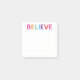 This pad of notes is perfect for anyone! With it's bright, happy colors and classic block print saying "Believe" it will lift anyone's spirits. Believe in good, believe in promise, believe in possibility, believe in love, believe in hope, believe in goodness, believe in yourself.