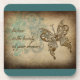 Distressed brown background with metal look butterfly Text reads: Believe in the beauty of your dreams.