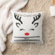 Believe cute Christmas reindeer Throw Pillow. A funny and cute modern abstract image of a reindeer head with Christmas lights. With Christmas lights hanging from the antlers. White background. Personalize by adding your Christmas Message, family name.