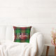 Believe Decorative White Script Red Green Tartan Throw Pillow