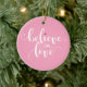 Lightweight, smooth, pure white ornament with nice sheen. Perfect size to be seen from across the room ... and to attract closer inspection! Price was great for ordering enough for the whole family! Clear, bold black design just as requested. Matches the order exactly. Just so nice!