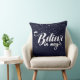 Add a touch of holiday enchantment to your décor with our 'Believe in Magic Midnight Blue Throw Pillow.' This delightful pillow features a midnight blue backdrop adorned with delicate snowflakes, creating a serene winter wonderland atmosphere. With the charming 'Believe in Magic' message, it's the perfect accent for your holiday home decor. Experience the magic of Christmas every day with this cozy throw pillow.