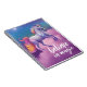 This enchanting notebook cover features a rather chonky unicorn set against a cosmic sky of purple and teal clouds, sparkling star clusters, and a dreamy aurora-inspired atmosphere. Below the unicorn’s feet float the words “believe in magic,” in elegant white script.