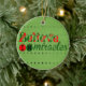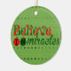 Lightweight, smooth, pure white ornament with nice sheen. Perfect size to be seen from across the room ... and to attract closer inspection! Price was great for ordering enough for the whole family! Clear, bold black design just as requested. Matches the order exactly. Just so nice!