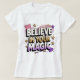 Embrace your power with this inspiring "Believe in Your Magic" T-shirt! Designed in bold, comic-style lettering with a glowing gold and white gradient, this magical design features glittery stars and charming wand icons that radiate confidence and wonder. Perfect for dreamers, creators, and anyone who needs a daily reminder that their magic is real. A wonderful gift for women, teens, and fans of mystical, positive vibes!
