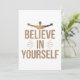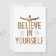 A motivational message is centered on a transparent background, with the text "BELIEVE IN YOURSELF" in bold lettering. Above the text, a silhouette of a person with outstretched arms appears.