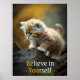 This cute inspirational cat poster features a beautiful kitten, with the inspiring quote "Believe in yourself/be you" A perfect way to add some inspiration and positivity to any room.