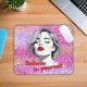 Boost your confidence every day with this stunning Believe in Yourself pink glitter mouse pad. Featuring a beautiful line-drawn portrait of a serene woman with bold red lips and closed eyes, set against a shimmering rainbow pink glitter bokeh background. The empowering message "Believe in yourself" in vibrant red script adds a daily dose of motivation and girl power.