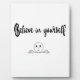 Believe in yourself, text and image. Drawing in cartoon style. Original design.