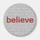 Pale grey background with black script: "believe all is possible love is everything all is possible if you believe" and the word "believe" in dark red. This would be a great item to have in plain sight everyday, either on you file cabinet, fridge or magnet wall or board. It would also be a nice gift to give someone, or a group. Great stocking stuffer or token gift.