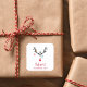 A funny and cute modern abstract image of a reindeer head with a red nose. With Christmas ornaments, baubles hanging from the antlers. White background,
