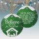 Believe, religious Christmas Nativity Scene Ceramic Ornament: Celebrate the Holy spirit with this religious design! The front features a green starry background adorned with twinkling stars cascading down both sides, delicate snow sparkles evoking a gentle snowfall, and snowy capped for a winter wonderland feel. At the center, a serene white nativity scene captures the holy moment, accompanied by the inspiring words: "Believe Him To Be The Son of God." Flip to the back for the same magical background, highlighted by the timeless Bible scripture in customizable white text: "And this shall be a sign unto you; Ye shall find the babe wrapped in swaddling clothes, lying in a manger" (Luke 2:12). All wording is fully customizable, allowing you to add a personal touch to this heartfelt keepsake. Perfect for your tree, as a gift, or to spread faith-filled joy this festive holiday season. Personalize and order yours on Zazzle today to make your celebrations even more meaningful!