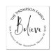 Believe Script Return Name Address. With your Christmas mailings in mind, this design has your return name and address, which you can easily personalise, curved above and below set handwriting style script, with the inspirational word Believe.