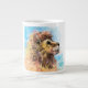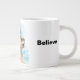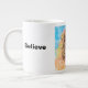 White jumbo mug with a lion and the word Believe.