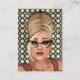 This fun business card design features a female portrait of a very sassy girl wearing cats eye glasses and sporting a glamourous beehive hairstyle which seems to be attracting a lot of attention! The little buzzing bees and vintage spotted backdrop add the finishing touches to this pop art style design. A great card for those into hair and beauty, retro fashion styles or just love the humor.