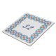 A lovely painted floral motiv in blue, orange and green like seen on mediterranean tiles.