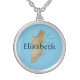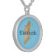 The design for this charming pendant features an editable name over a map of Belize on a sky blue background. The featured name can be changed to any name or text of your choice, creating a personalized gift for a Belizean friend or loved one. Font and background colors can also be altered as desired.
