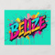 Postcard from Belize! This postcard in graffiti style features an a big colorful Belize script .