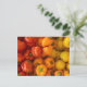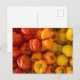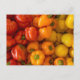 This postcard features a photo of red, orange, and yellow bell peppers.