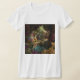My overall review is that the T-shirt is nice, it fits true to size however the font is significantly smaller than advertised and you can't read it. The printing is unreadable and there is a strain to read it. It does not look like the advertised product. Maybe the shirt color is darker or a larger more visible font should have been used. Photos with and without flash and font is barely legible.
