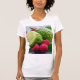 The material is a great quality that is hard to find with most tee shirts. Fabric was not see-through or thin at all, but was also very soft and comfortable. The shirt description states that it runs a little small, so I sized up one size for a perfect fit! I would definitely buy this type of tee shirt again because I love the fit and high quality fabric that I cannot find anywhere else. The printing was perfect and just as pictured. Loved the cute quote and really enjoy the tee in both the quality and design. I love quirky typography designs and funny quotes and I am extremely pleased with the overall quality and value I get at Zazzle!