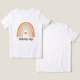 The minimalist, boho-inspired graphic centers around a hand-drawn rainbow in muted, earthy tones: ochre, dusty pink with subtle polka dots, tan, and sage green. A small ochre heart nestles beneath the innermost arch, while the uplifting phrase “CHOOSE JOY” appears below in a playful soft-pink serif font with a subtle outline for a pop-out effect. This versatile tee effortlessly pairs with jeans, leggings, or skirts for a relaxed, Scandi-minimalist look.