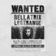 Dive into the darker side of the wizarding world with this striking design featuring the infamous Bellatrix Lestrange wanted poster. Perfect for fans of thrilling magic, mysterious characters, and captivating wizarding lore. Showcase your love for the magical universe with this bold and iconic design.