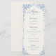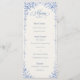 The Bellefontaine Suite — French Blue Wedding Menu features a romantic dusty blue background adorned with delicate white French florals for a refined estate-inspired look. Designed in an elegant 4x9 format, this menu card brings timeless European charm to your reception tables.