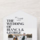 The Belmont design card showcases the couple's names in a large bold font, creating a visual centerpiece that speaks volumes. As you glance above and below, the essential details of the celebration are gracefully presented in a small, classic serif font. The back side is a canvas for another beautiful photo of the couple, allowing a glimpse into their shared journey. A personalized message, thoughtfully crafted by the couple, adds a warm and intimate touch, inviting loved ones to join in the celebration of their union.