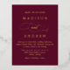 Simple and elegant wedding invitation postcard featuring your names and wedding details displayed in gold foil lettering with calligraphy script accents on a burgundy background. The back of the gold foil wedding invitation postcard displays your return address, RSVP details, and wedding website. The design coordinates with our Beloved wedding collection.