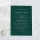 Make a refined and luxurious statement with this acrylic wedding invitation featuring your names and wedding details in elegant white lettering with flowing calligraphy accents. Set against a rich emerald green acrylic background, this design brings a sense of depth, sophistication, and timeless style. Perfect for garden, winter, or formal wedding themes, this striking invitation sets the tone for a beautifully elegant celebration.