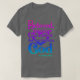 My 11 yo wore adult XL (5’7” 165#). The 8yo is small framed. She wore adult small and tied it in the back. Grandma wore adult large with long sleeve shirt underneath. Tall girl adult medium. Dark haired male adult large. Good quality dark Heather gray, Gildan brand shirt. -it was next up from basic choice and cost about $20 per shirt. Not too thick or thin. Washed and dried well, no major shrinkage. Not see-through. Can wear a bra under it fine. Screen print is just as shown and well done, front and back.