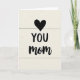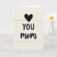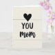 This card features a simple, affectionate layout on a soft off-white background, with a calm, cozy feel that suggests a close bond ❤️. Near the top center sits a small, symmetrical black heart, like a quiet nod to love and appreciation. Under the heart, the word “YOU” appears in large, dark, easy-to-read letters, centered and spaced to feel steady and direct. Just below it, “mom” is written in a flowing cursive style, adding a gentler, more tender touch as if spoken softly. The contrast between the strong uppercase “YOU” and the softer “mom” creates a sweet push-and-pull, like a warm hug paired with a proud smile 👩. All the text is aligned down the middle, with generous breathing room around each element so the message stands out without extra decorations. The background shows faint horizontal lines, like subtle paper grain or light wood texture running across the cream surface.