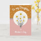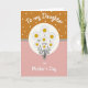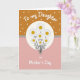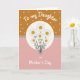 This design shows a bouquet of daisy-like flowers with white petals and sunny yellow centers, gathered together as if offered with a gentle, affectionate gesture ❤️. The blooms sit inside a large cream-colored circle that acts like a soft spotlight against the background. The top half of the card is a warm earthy orange scattered with small white dots, while the bottom half is a blush pink that feels calm and friendly 🌼. A scalloped dividing edge runs horizontally between the two color fields, adding a softer transition. Thin gray stems and muted leaves extend downward and are tied together near the base in the pink area, suggesting a neat, caring touch. White lettering appears above the circle and again below it, centered and easy to read against the orange and pink sections. The type has flowing, connected letterforms, and the bright white text stands out clearly without overpowering the flowers. Small white dots float across the orange area above the cream circle, echoing the flower petals.
