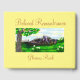 It has "Mountain Peaceful Pastures" watercolor painting. This design has moderate contrast with mostly medium tones. It has rich greens and blue colors. There is a variation of shades and red tones to offset. It has "Beloved Remembrance" written on it.
