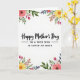 This card features a bright white background with a centered greeting that feels tender and close, like a partner’s gentle squeeze of the hand ❤️. Near the top center, “Happy Mother’s Day” appears in flowing black lettering, drawing the eye first. Directly beneath it, a second line in smaller, neat black text reads “TO A WIFE WHO IS LOVED SO MUCH,” aligned to sit comfortably under the main message. Floral clusters decorate all four corners, creating a soft frame around the words without crowding them. The flowers include large coral-pink blooms, sunny yellow blossoms, and small fuchsia buds, paired with layered green leaves and a few deeper purplish-blue accents for contrast. The petals have softly blended color and slightly feathered edges, giving the arrangement a gentle, romantic look 🌼. In each corner, the flowers angle inward toward the center, with leafy stems curling along the edges of the white space.
