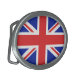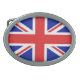 Belt buckle shown in a brushed silver tone color with a British flag print.