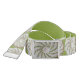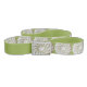 Spiral disk in crochet is replicated many times over length of belt. Spiraling arms in green, with white center and background, is a photographic image of a circular motif worked in crochet. Background and back of belt is medium green. Center of disk is replicated on buckle. ***Part of coordinated set - bkmAN1d