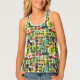 Women's All-Over Print Racerback Tank Top, White Piping, S