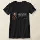 My overall review is that the T-shirt is nice, it fits true to size however the font is significantly smaller than advertised and you can't read it. The printing is unreadable and there is a strain to read it. It does not look like the advertised product. Maybe the shirt color is darker or a larger more visible font should have been used. Photos with and without flash and font is barely legible.