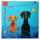 "Beneath the Blue Horizon" - Surreal Colourful Dogs. With abstract swirls and inquisitive gazes, this surreal artwork transforms two dogs into symbols of playful companionship. With bright blue hues and playful patterns this piece offers a unique and imaginative perspective on friendship and fun. Labrador and Vizsla dogs.