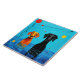 Beneath the Blue Horizon - Surreal Colourful Dogs Ceramic Tile