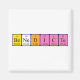 Benedicte spelled out as Be Ne D I C Te (Beryllium Neon Deuterium Iodine Carbon Tellurium) on a magnet for the scientist in you.