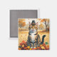 Bengal Cat in Autumn Leaves Thanksgiving Art Magnet
