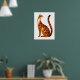 Stylized watercolor artwork of a Bengal cat shown in profile, featuring elongated proportions and warm orange rosette markings. The clean background emphasizes the decorative silhouette and patterned coat, creating a modern animal-focused composition. AI-assisted artwork.