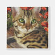 Bengal Kitten with green eyes posed against backdrop of colorful poppies is available on magnets,Totebags, apparel, cards and gifts by Friskybizpets