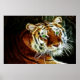 A Chinese Bengal Tiger with white electricity glowing coming out of his skin this tiger is orange and black stripes his teeth pointing at you and his eyes wide open