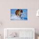 Featuring a breath taking view of a Bengal Tiger runIng in the beautiful blue ocean water with splashes of water going all over the place .this is a beautiful photo on this poster